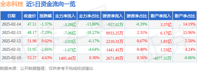 2月14日的资金流向数据方面,主力资金净流出3.28亿元,占总成交额13.8%,游资资金净流出937.02万元,占总成交额0.39%,散户资金净流入3.37亿元,占总成交额14.19%。